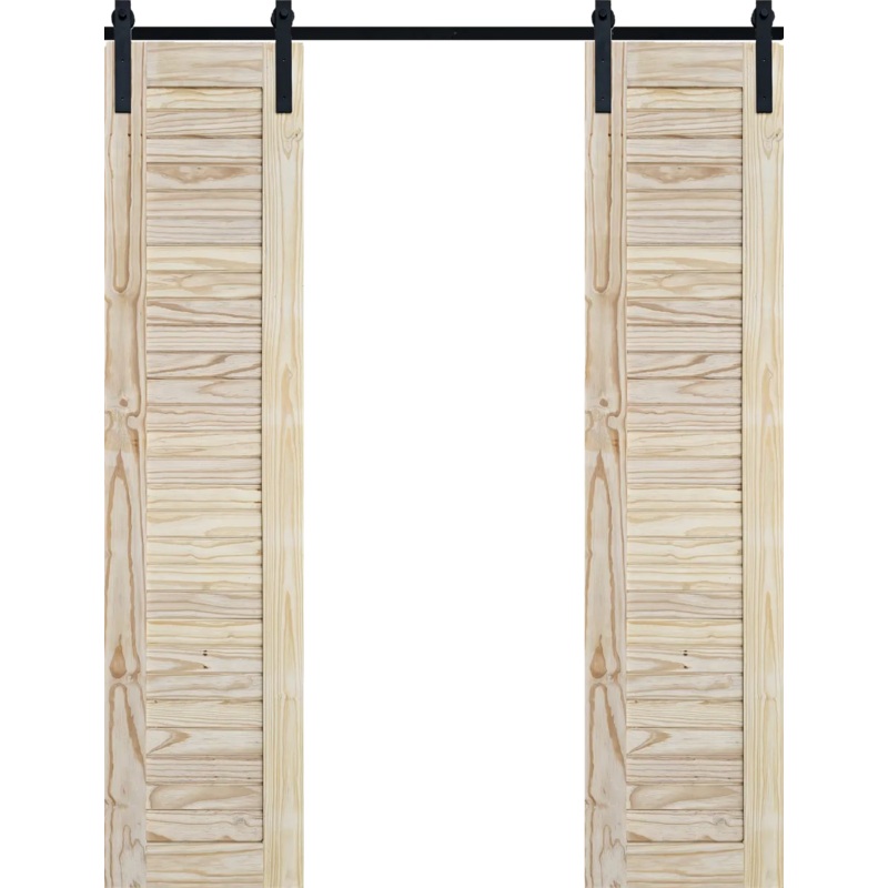 Double Horizontal Pine Barn Door Set 950W X 2100H, complete with all necessary hardware for easy installation. This barn door set covers up to a 950mm wide opening and includes two pine doors, each measuring 500mm wide and 2100mm high. One door slides right, and the other slides left, providing a stylish solution for internal spaces. This set is designed for DIY installation with a 2000mm long steel track and double-sided design, enhancing both function and aesthetics. Perfect for various interior decor styles, the raw pine finish allows for custom painting or staining to suit your personal taste.Features:Covers up to a 950mm wide openingEach door is 500mm wide x 2100mm highSmooth sliding mechanism (1 door slides right, 1 slides left)2000mm steel track includedRaw Pine Doors, ideal for internal useDouble-sided designDIY-friendly installationHandles not includedCustom sizes available upon request