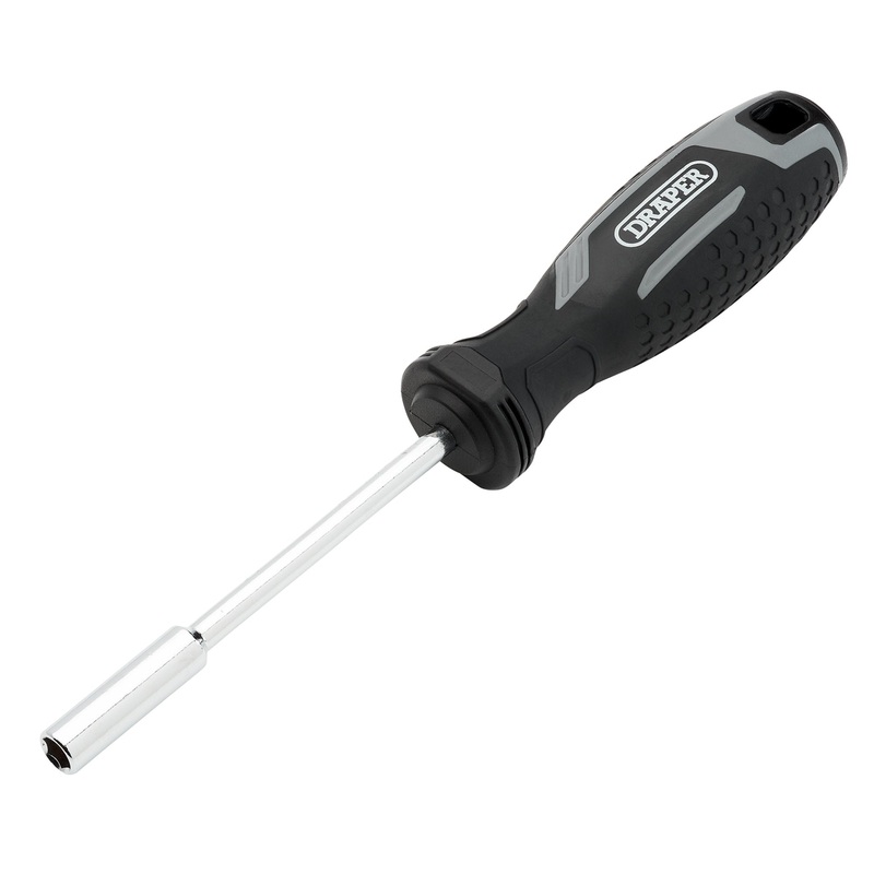 This bit holder is suitable for standard 1/4″ hex. screwdriver bits. The round blade is made from hardened chrome vanadium steel, which is chrome plated for corrosion protection. There is a magnetic tip for efficient holding and rapid changing of screwdriver bits. It has an ergonomic soft grip handle providing comfortable use. The handle shape helps ensure the bit holder does not roll off flat surfaces. There is a hang hole integrated into the handle for convenient storage.