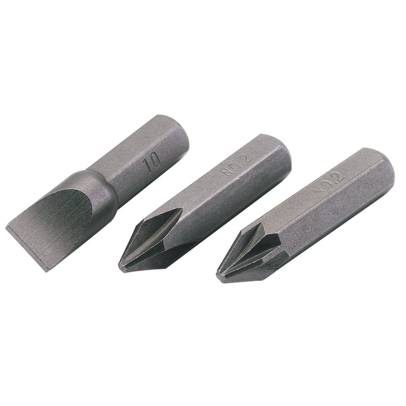 8mm hexagon shank bits suitable for use with Stock Nos. 22322 and 81519 Impact Screwdriver Sets. Sold loose.