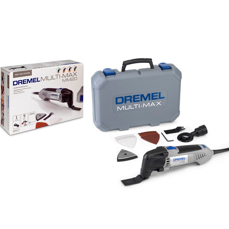 Powerful 250 Wattsmotor. The Dremel Multi-Max MM20 oscillating multi-tool gives DIY-ers a powerful professional performance. With a higher capacity and greater productivity than the original Multi-Max 6300, the MM20 is capable of handling all the applications the 6300 can and more. The MM20 is a solid-performing and comfortably operating oscillating tool from the brand you trust. Two year warranty.