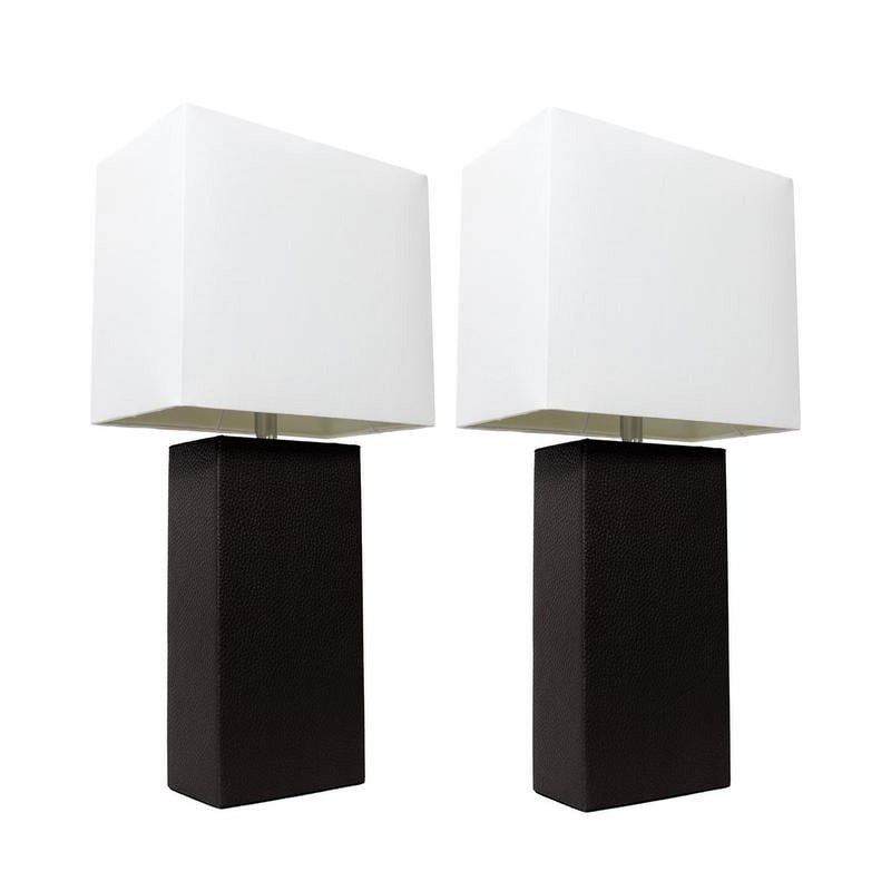 Elegant Designs 2 Pack Modern Leather Table Lamps with White Fabric Shades, BlackThese fashionable table lamps, with their leather bodies and white fabric shades, will add style and pizzazz to any room. We believe that lighting is like jewelry for your hom