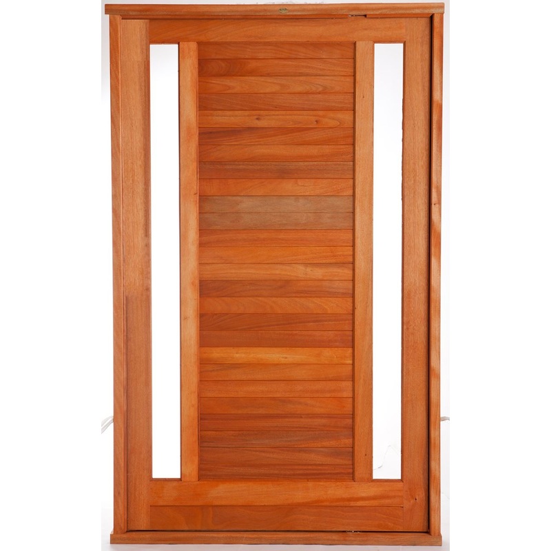 1200W X 2032H Horizontal Slatted Pivot Door with cut-outs for glasspre hung in the frame.FeaturesWinsters Pre Hung Pivot DoorDoor is Pre-hung in the frameSupplied fitted with a stainless steel lock & adjustable staineless steel pivot hingeRubber Seals for