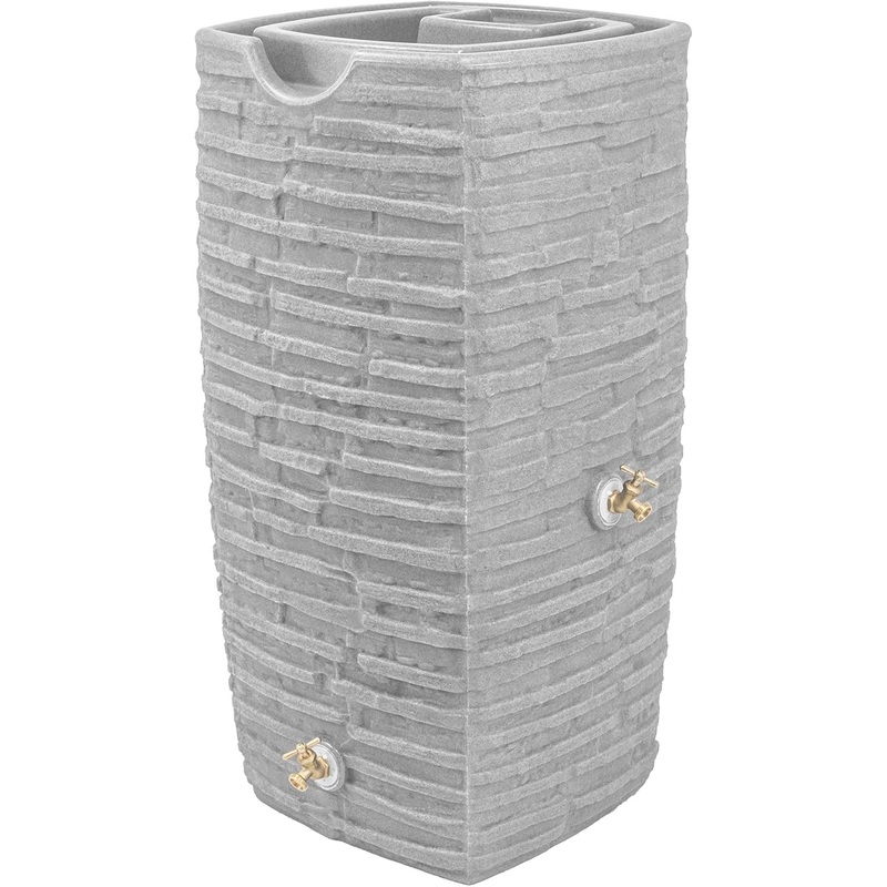 Good Ideas Rain Barrel, Faux Slate Riverwalk w/ 2 Brass Spigots, 50-Gal, Light Granite | Bigbigmart.com