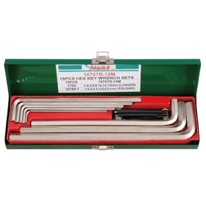 Hans 16767B-15M Hex Key / Allen Wrench Set 1.5-14mm (Long Arm)