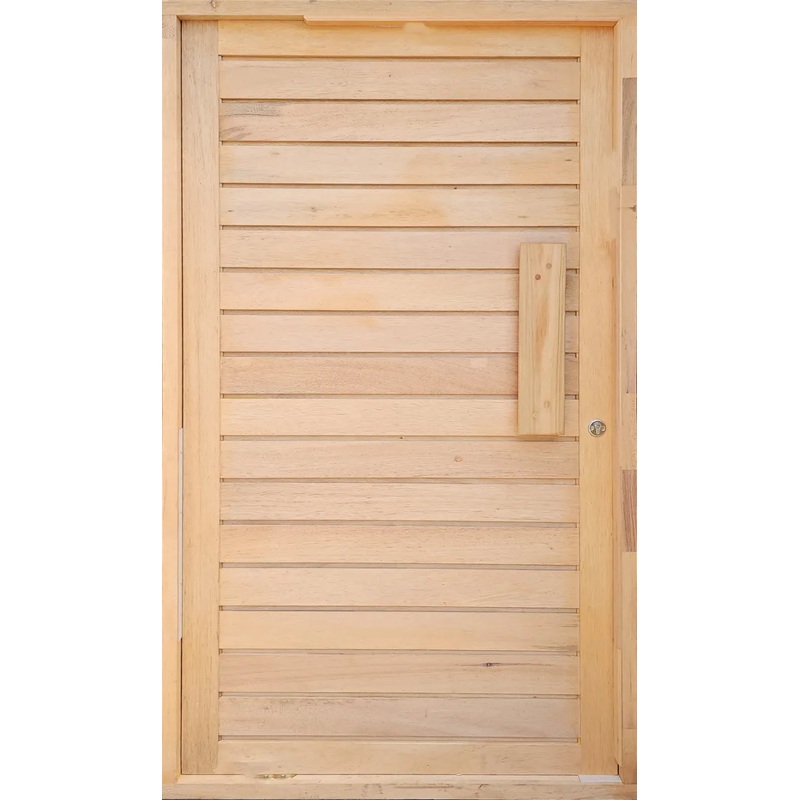 1200W x 2032H Solid Hardwood Horizontal Slatted Pivot Door Pre-Hung in FrameEnhance your home's entrance with this premium solid hardwood horizontal slatted pivot door, designed for both durability and modern aesthetics. Crafted from high-quality tropical