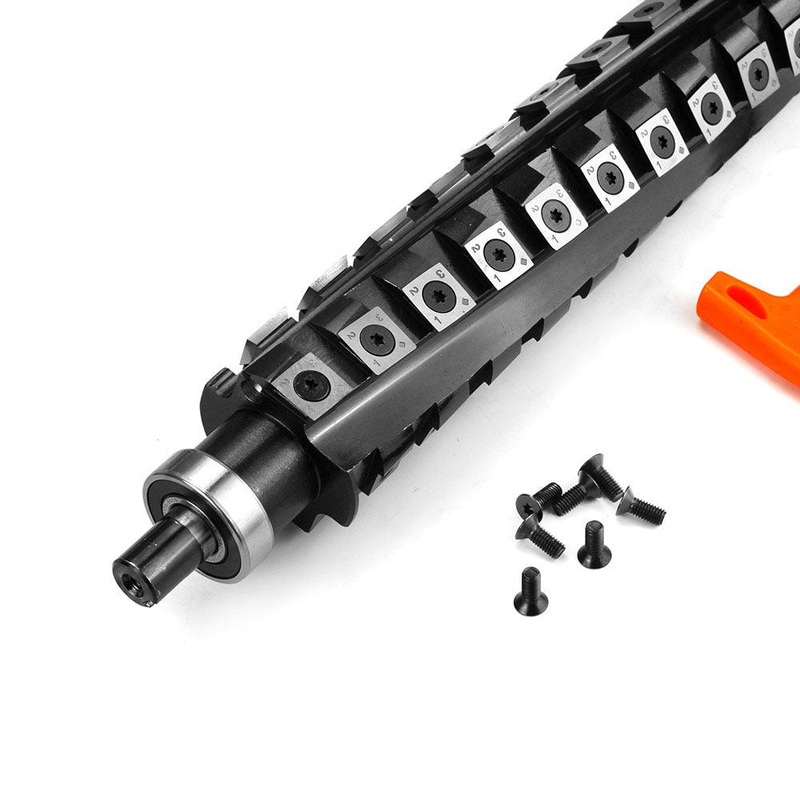 FindBuyTool Helical Cutterhead for Makita 2012NBThe helical cutterhead is designed forMakita2012NB12″ portable planer. The shear-cut design and 52 carbide inserts of the helical head will provide you with a superior finish and dramatically reduce the noise.Any option Includes:1 x Findbuytool helical head (4 rows & 52 carbide insert knives)52+3 extra Carbide insert knives52+3 extra Screws2 x WrenchesThis well-machinedhelical spiral cutterhead is built to perfectly fit your Makita 2012NB machine. The tungsten carbide insert kniveson the segmented cutterhead are madefrom 100%virgin material. For spare carbide insert knives, please click15x15x2.5mm-30-R150carbide inserts.FeaturingPerfectwood surface finish thanks to the 52 carbide inserts.The shear cut virtuallyeliminates tear-outs.40 times longer lifetime from our proud carbide insert.Feed faster and more consistently.The helical cutter head perfectly fitsthe Makita 2012NB planer (thicknesser).Bearings are pre-installed.Producing much smaller chips and your dust collection system will function more efficiently.Changing blades is effortless and does not require adjustment.Noneed to re-sharpen the blades any longer.Significantly reduced noise level.In case you’re unable to locate a cutter head that matches your machine model,we also provide an optionforacustom cutter head.Technical informationMax Wide of Cut12.5 InchCutting Diameter3 inchCutting Wings4Insert Knives15x15x2.5mm-30-R150ApplicationHard Wood/Soft Wood/Artificial WoodSHIPPING DIAMETERNet Weight:4100gPackage Size:400 x 50 x 30mmNote:The machine chassis needs to be filed to fit the new blades