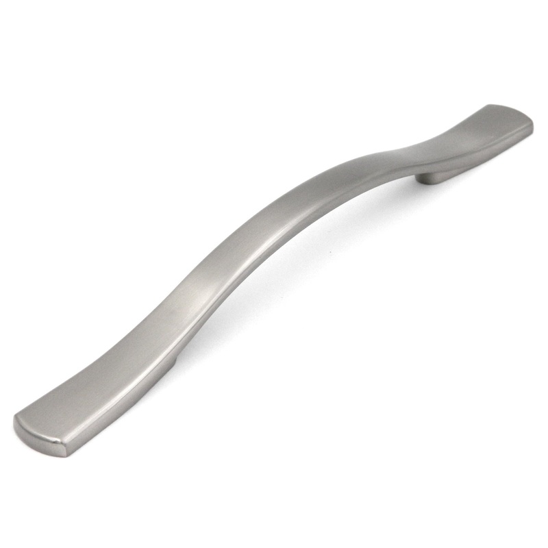 New P2165-SN Satin Nickel (Silver) 5" (128mm) Screw Spacing Sleek Arch Cabinet Handles Pulls from Belwith Hickory Hardware's Euro-Contemporary CollectionEuro-Contemporary Collection Satin NickelSmooth Arch Cabinet Handle PullZinc construction for durabilit