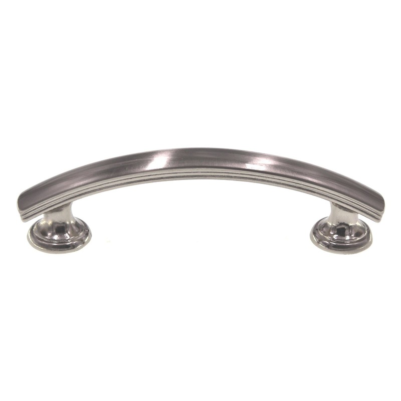 Satin Nickel cabinet arch pull handle with 3 inch center screw spacing, model P2143-SN from Belwith Hickory Hardware's American Diner collection.Hickory Hardware American Diner arch pullSatin Nickel finish, zinc materialsSimple lines with a 50's American d