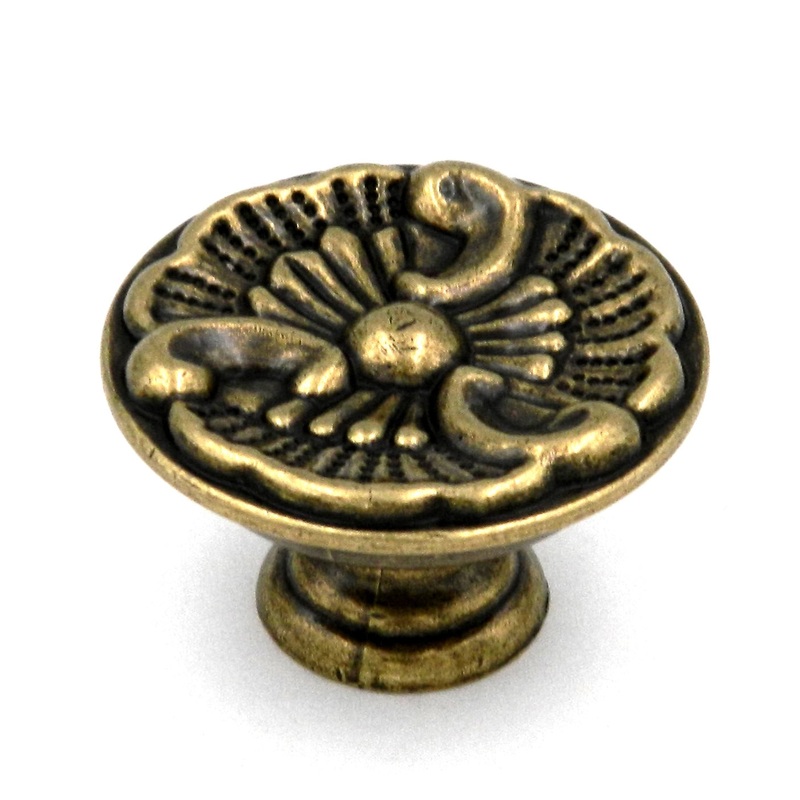 Ornate Lancaster Hand Polished Brass Cabinet Knob Pulls P8160-LP from Belwith Keeler Hickory Hardware's Manor House CollectionTraditional Manor House collectionLancaster Hand Polished Brass finishRound Ornate DesignProjection: 3/4"Diameter: 1 1/4"; Base: 5