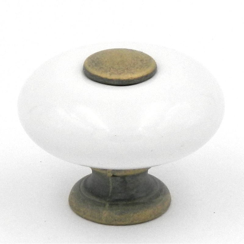 P222-BOAW White 1 1/4" Cabinet Knob Pull with Blonde Antique Stem from Belwith Hickory's Tranquility CollectionAdd style to your cabinets and furnitureTranquility, Blonde Antique White finishRound DesignDurable Porcelain, Zinc constructionDiameter: 1 1/4";