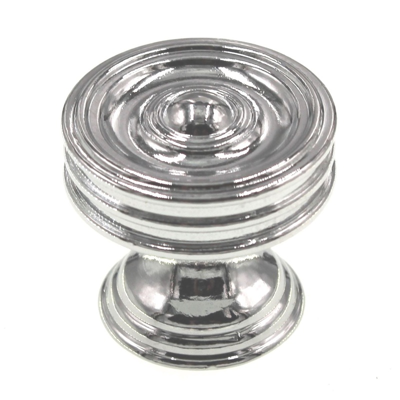 Chrome 1 1/4" round ringed cabinet knob, model P3131-CH from Hickory Hardware's Williamsburg collection.Belwith Products Williamsburg knobChrome finish, zinc materialsTimeless and versatileLiven up your living space with quality hardware from Hickory Hardw