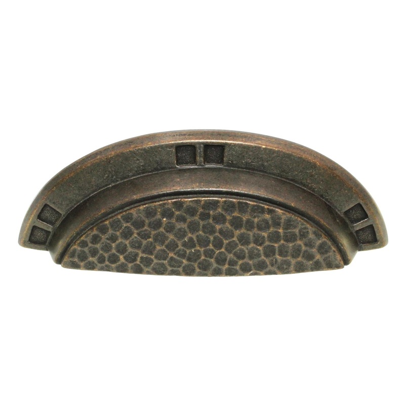 Windover Antique drawer cup pull with 3 inch, 3 3/4 inch (96mm) center screw spacing, model P7527-WDA from Hickory Hardware's Arts & Crafts collection.Hickory Hardware Arts & Crafts drawer cup pullWindover Antique finish, zinc materialsInspired from those