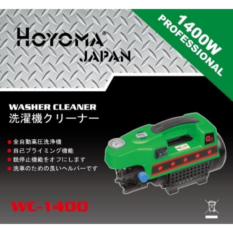 WC-1400 HOYOMA WASHER CLEANERvoltage: 220v/60hzfully automatic high pressure cleanerrated pressure: 90barself-priming functionmax, pressure: 120barturn off the gun stop functionrated flow: 6L/minis good helper for car washpower: 1400w