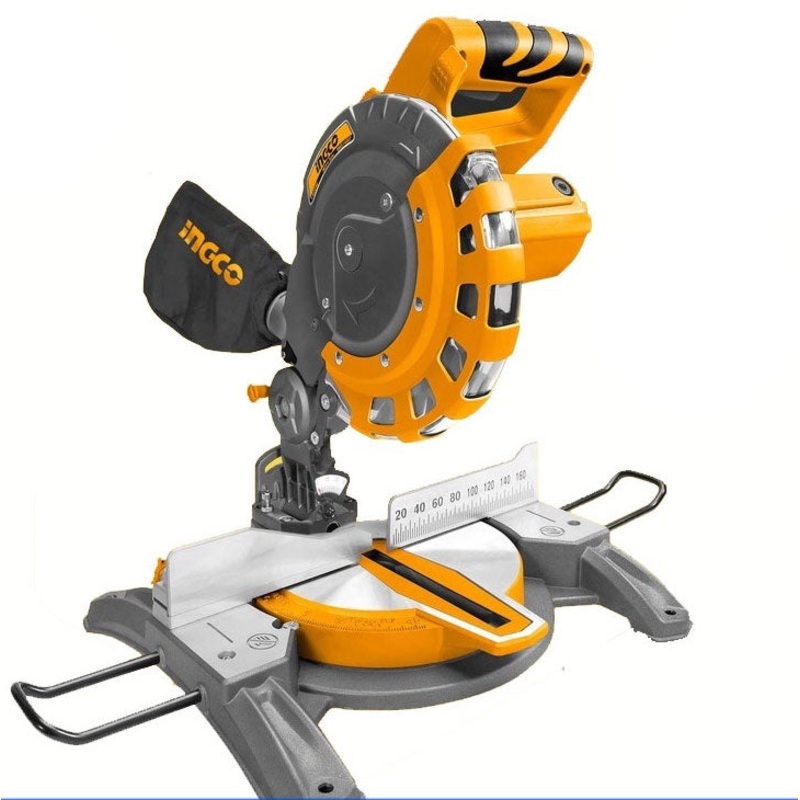Ingco BMS14007 Compound Miter Saw 1400WVoltage:220-240V 50/60HzInput power:1400WNo-load speed:5000rpmBlade size:210mm 8-1/4" 25 4mmAluminium baseMax cutting capacity:55x120mmDust bag keep work area cleanMitre cuts 0-45 left and rightBevel cuts up to 45 to