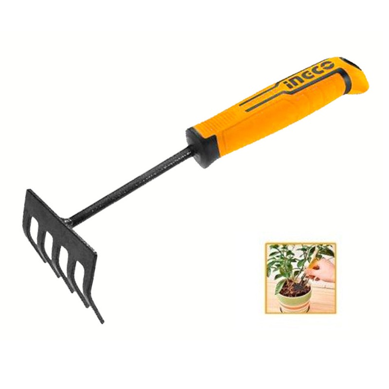 Ingco HFTR1008 Hand Garden Rake / Soil RakeLength :270mmUnique design patent handleWidth:82mm Main rod:8 0mmMaterial:carbon steel