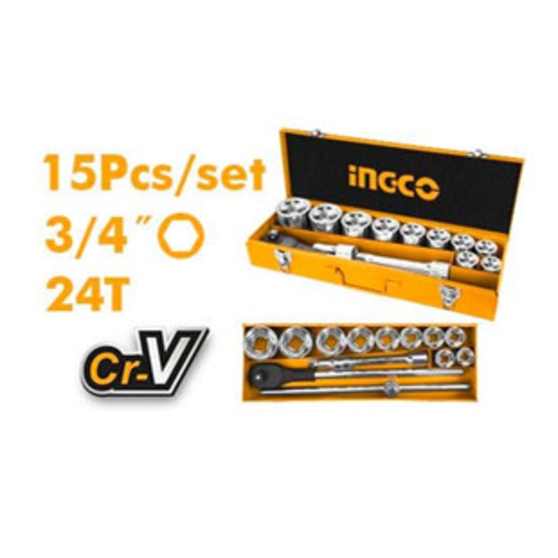 Ingco HKTS034151 15pcs Socket Wrench Set 3/4″ Drive