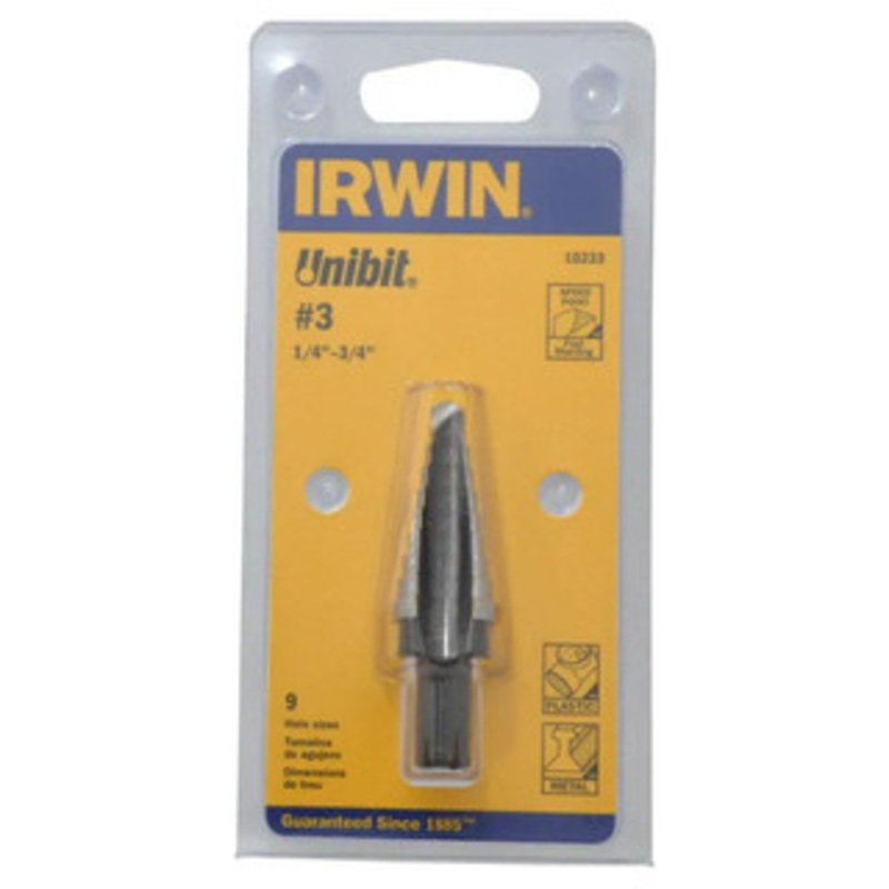 IRWIN Unibit Self-Starting Step Drill #10233, HSS, 9 Hole Sizes, 1/4 to 3/4″ Hole Dia.