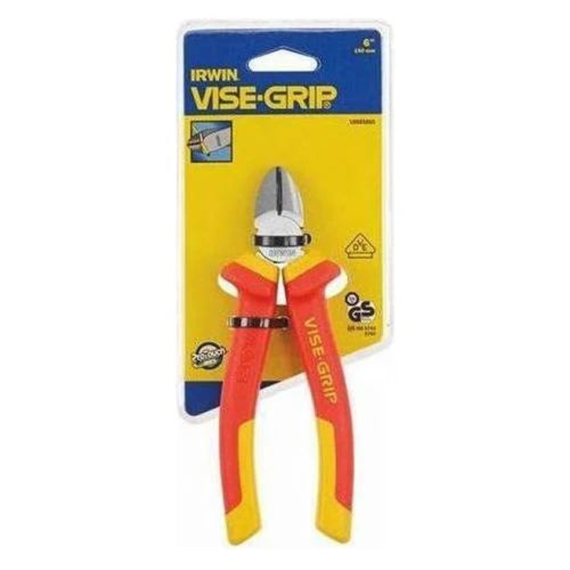 Irwin VDE Insulated Diagonal Cutting Plier / Side CutterIRWIN Vise-Grip VDE Pliers are fully TV, GS and VDE certified, meaning they are guaranteed safe for working with electrical equipment up to AC 1000V or DC 1500V. Their induction hardened cutting edges