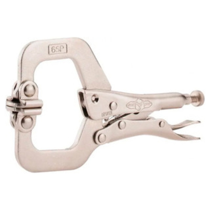 IRWIN VISE-GRIP Locking C-Clamp w/ Swivel Pads 6SP6" Length, 2-1/8" Jaw Opening Features: Wide opening jaw provides greater versatility in clamping a variety of shapes. Swivel pads hold tapered work, awkward fabricating jobs and delicate projects without d