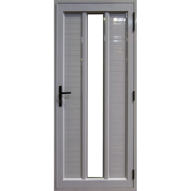 Swartland Kayo DGLC Vertical Panel Aluminium Door in Frame 900W X 2100HNo Cillon Door FrameOpens InwardsObscure Safety GlassAvailable in left or right hand configurationManufactured by SwartlandWoolpile SealsIncludes lock, hinges & black aluminium handleAv