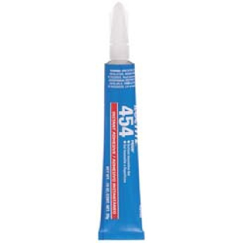 LOCTITE 454 is an instant adhesive designed for the assembly of difficult-to-bond materials which require uniform stress distribution and high tensile and/or shear strength. The product provides for the rapid bonding of a wide range of materials, including metals, plastics and elastomers. The gel consistency enables overhead and vertical application. LOCTITE 454 is also suited to bonding porous materials such as wood, paper, leather and fabric. Perfect for all quick repair jobs.