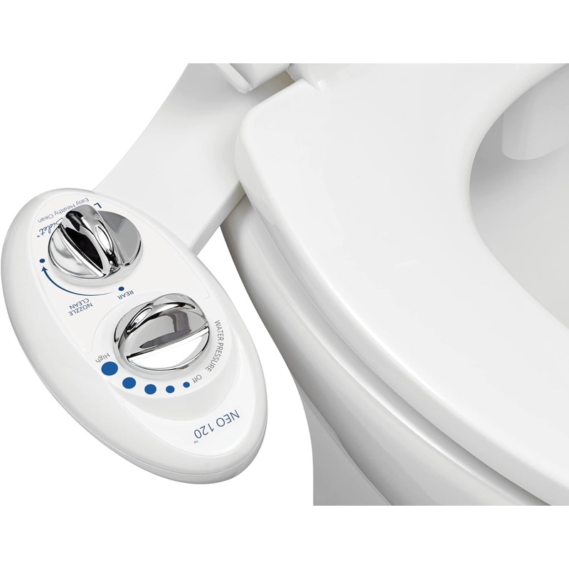 LUXE Bidet NEO 120 Self-Cleaning Nozzle, Fresh Water Non-Electric Bidet Attachment for Toilet Seat, Adjustable Water Pressure, Rear Wash (White)THE ULTIMATE VALUE With a sleek design and high-quality parts, our bidet attachment will give your bathroom a next-level look. Constructed with high-pressure valves with metal-ceramic cores and steel hoses instead of plastic.HYGIENIC PROTECTION The guard gate is designed to shield the nozzles for your ultimate sanitary experience. The nozzles automatically retract behind the guard gate after each wash to ensure it is protected until your next use.AN EASY HOME UPGRADE Elevating your home with a luxurious element has never been easier. Includes ALL PARTS AND TOOLS to get your bidet up and running in minutes. Easily attaches to and detaches from any standard two-piece toilet.SAVE MONEY EVERY USE Save money (and trees!) on toilet paper. Cleaning with our bidet is gentle on your skin and sustainable for the planet.18-MONTH WARRANTY Our world-class Customer Care team is always here to make sure you are 100% satisfied, so anytime you have problems or concerns about the products, we are just one call away. Register your bidet online and get an extended warranty.Product informationTechnical DetailsBrandLUXE BidetRecommended Uses For ProductBathroomMounting TypeWall MountFinish TypePolishedMaterialPlasticColorWhiteIncluded ComponentsNEO 120 Bidet AttachmentSpecial FeatureAdjustableHandle TypeKnobStyleAttachmentInstallation TypeSingle HoleModel NameBidetNeo120swwHandle MaterialPlasticSpout Height3 InchesSpout Reach5 InchesItem Weight2.1 PoundsWarranty TypelimitedManufacturerLUXE BidetPart NumberNeo 120 whiteItem Weight2.05 poundsProduct Dimensions17 x 10 x 3 inchesCountry of OriginChinaItem model numberNeo 120 whiteIs Discontinued By ManufacturerNoSize17 x 10 x 3 inchesFinishPolishedItem Package Quantity1Special FeaturesAdjustableBatteries Included?NoBatteries Required?NoWarranty Description18 month warranty for bidet and its accessories