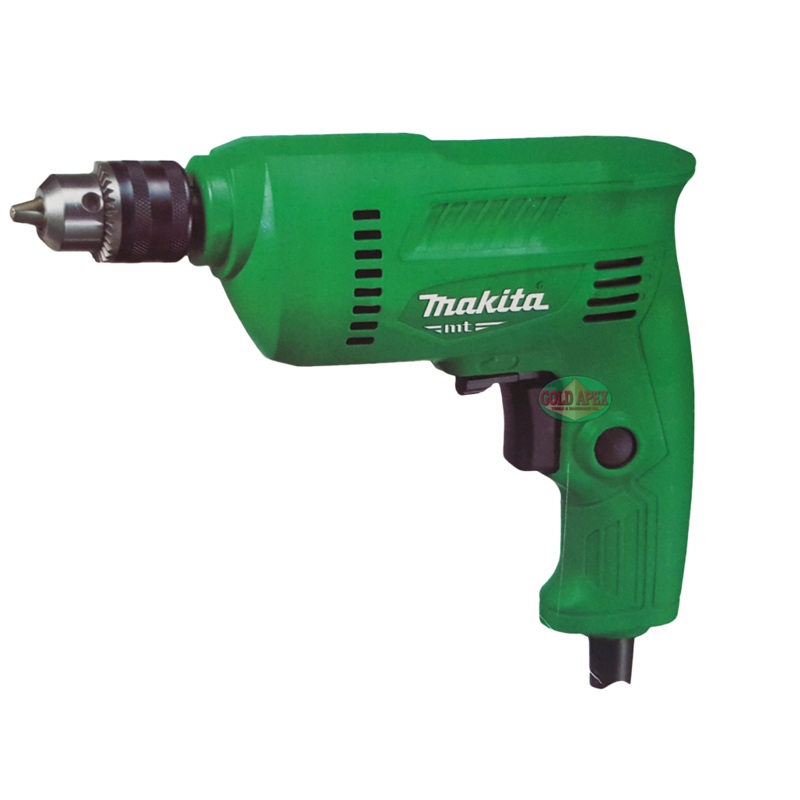 Makita MT SeriesContinuous power input: 350 WWith Variable speedReversing hand drillDouble insulationVoltage: 220VNo load speed: 0 - 3,000 rpmDrilling capacity on steel: 10 mm (3/8")Drilling capacity on wood: 20 mm (13/16")Dimensions (L x W x H) : 23 cm x