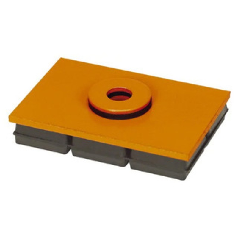 Usually it is more convenient to buy them, so two types are offered. The WMSW has the cemented steel plate sandwiched between a super waffle pad on the bottom and a 1/4″ friction pad on the top. No bolting required. The MBSW replaces the friction pad on top with a 3/4″ diameter center hole for bolting through. A 3/4″ neoprene isolation washer cemented to a steel washer is provided as well.