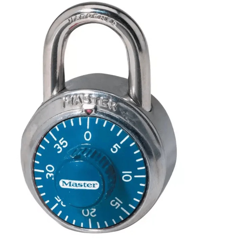 MasterLock 1506D Combination Padlock (Blue)The Master Lock No. 1506D Standard Dial Combination Padlock features a 1-7/8in (48mm) wide metal body for durability, with a stainless steel cover. The 9/32in (7mm) diameter shackle is 3/4in (19mm) long and made o