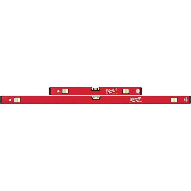 Milwaukee MLCMS48 24 in./48 in. REDSTICK Compact Box Level SetThe Milwaukee REDSTICK Box Levels provide industry-leading performance with best-in-class vial readability and frame durability. The ALL-METAL BACKBONE provides the strongest, most durable frame ensuring long-life accuracy. SHARPSITE Vial Technology provides best-in-class readability with a magnified bubble and high-visibility vial spirit. The Milwaukee REDSTICK Box Levels are backed by a Lifetime Accuracy Guarantee and a Limited Lifetime Warranty.SHARPSITE vial technology best readability, impact protectedGuaranteed lifetime accuracy accurate to .029-degree (.0005 in./in., 0,5 mm/m)High contrast vial system is easy to clean and optimizes visibilityHigh density, removable end-caps protect frame and provide access in tight spacesWide, durable handles for comfort and portabilityPrecision milled measuring surface guarantees accuracy in all working positionsOver-molded, non-slip grips stick to the wall and prevent slidingDurable, all-metal hang hole for storageDimensionsLevel Length (in.)48Product Depth (in.)48 inProduct Width (in.)2 in