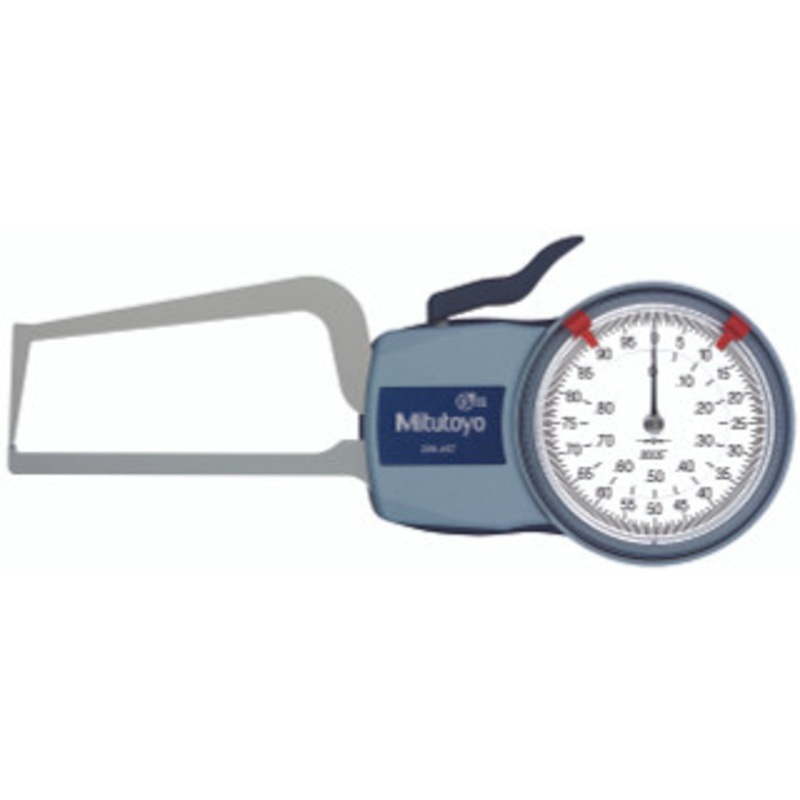 Mitutoyo Dial Caliper Gage External Measurement Type - Series 209-457 The caliper is spring loaded and makes point contact at constant measuring pressure. Use with a setting ring or a micrometer. Specifications: Model Range Grad. Accuracy Max.Meas.Depth L