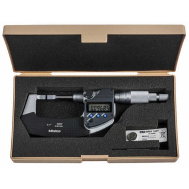 Mitutoyo Digimatic Blade Micrometer, 0-1"/0-25.4mm 422-360-30 For measuring narrow grooves, keyways and other hard to reach dimensions.Features: 1 - 2" micrometers furnished with standard for mic reading verification Ratchet stop gives a constant feel betw