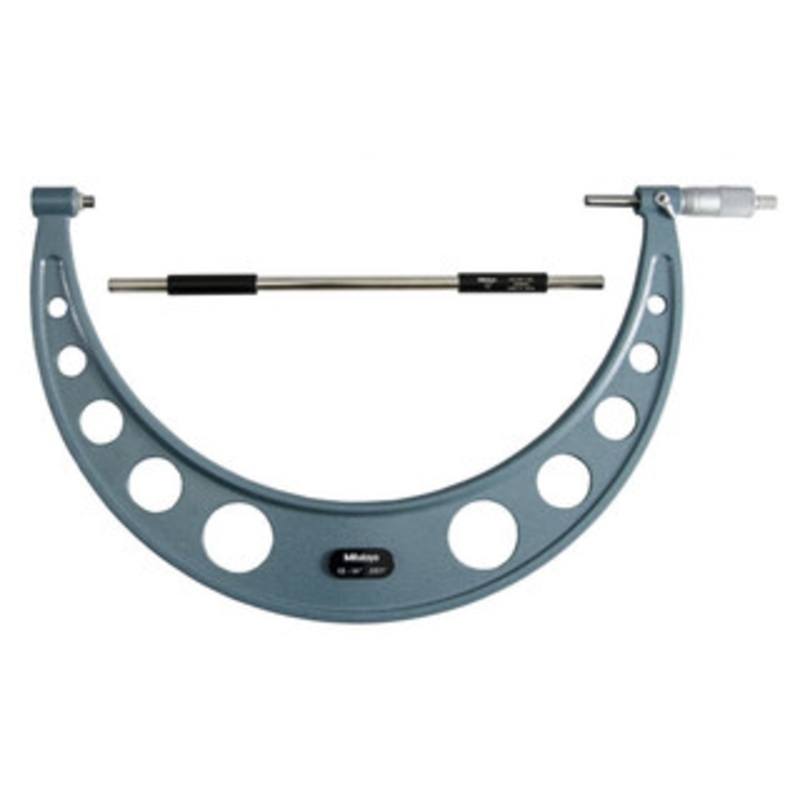 Mitutoyo Outside Micrometer with ratchet stop, Series 103- 103-190 Range: 13-14" | Accuracy: 0.0003" Hammertone-green, baked-enamel finished frame Ratchet Stop for exact repetitive readings With a standard bar except for 0-1" model Technical Data: Graduati