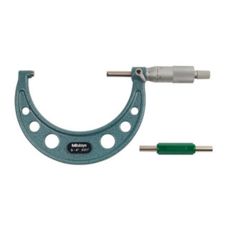 Mitutoyo Outside Micrometer with ratchet stop, Series 103- 103-208 Range: 31-32" | Accuracy: 0.0006" Hammertone-green, baked-enamel finished frame Ratchet Stop for exact repetitive readings With a standard bar except for 0-1" model Technical Data: Graduati