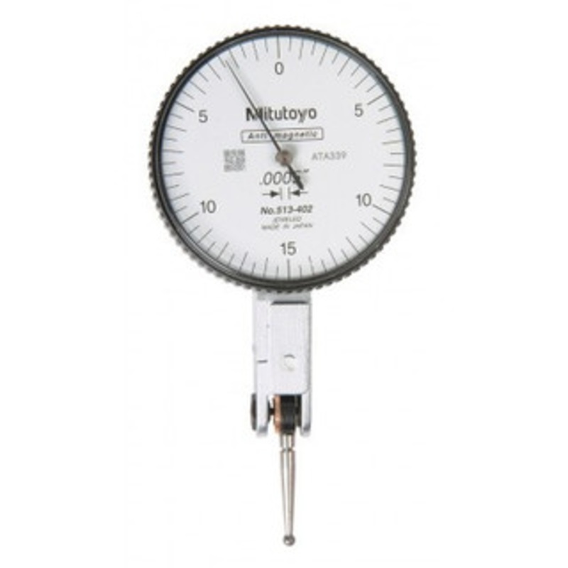 MitutoyoQuick-Set Test Indicator - Series 513-402T Full set with swival clamp, holding bar and contact points. Features Anti-magnetic Jeweled bearings No-clutch structure Water and dust resistant Glare-free crystal with scratch-resistant coating Metric dia
