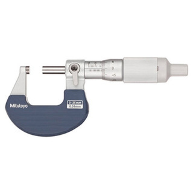 Mitutoyo Ratchet Thimble Micrometer, 0-25mm102-701 Ratchet function works both from the thimble and the speeder,allowing easy one-handed operation. Clearly audible ratchet operation for reassurance that measurement is being performed at constant,preset for