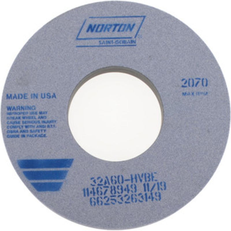 Norton 12" Diam x 5" Hole x 1-1/2" Thick, H Hardness, 60 Grit Surface Grinding Wheel Aluminum Oxide, Type 1, Medium Grade, 2,070 Max RPM, Vitrified Bond, No RecessManufacturer Part #: 66253263149S/N: 90485103UNSPSC: 23131503UPC: 662532631499(Minimum Order