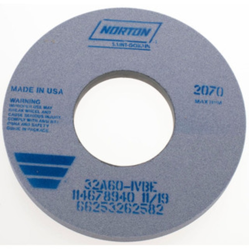 Norton 12" Diam x 5" Hole x 1" Thick, I Hardness, 60 Grit Surface Grinding Wheel Aluminum Oxide, Type 1, Medium Grade, 2,070 Max RPM, Vitrified Bond, No RecessManufacturer Part #: 66253262582S/N: 05989520UNSPSC: 23131503UPC: 662532625825(Minimum Order Quan