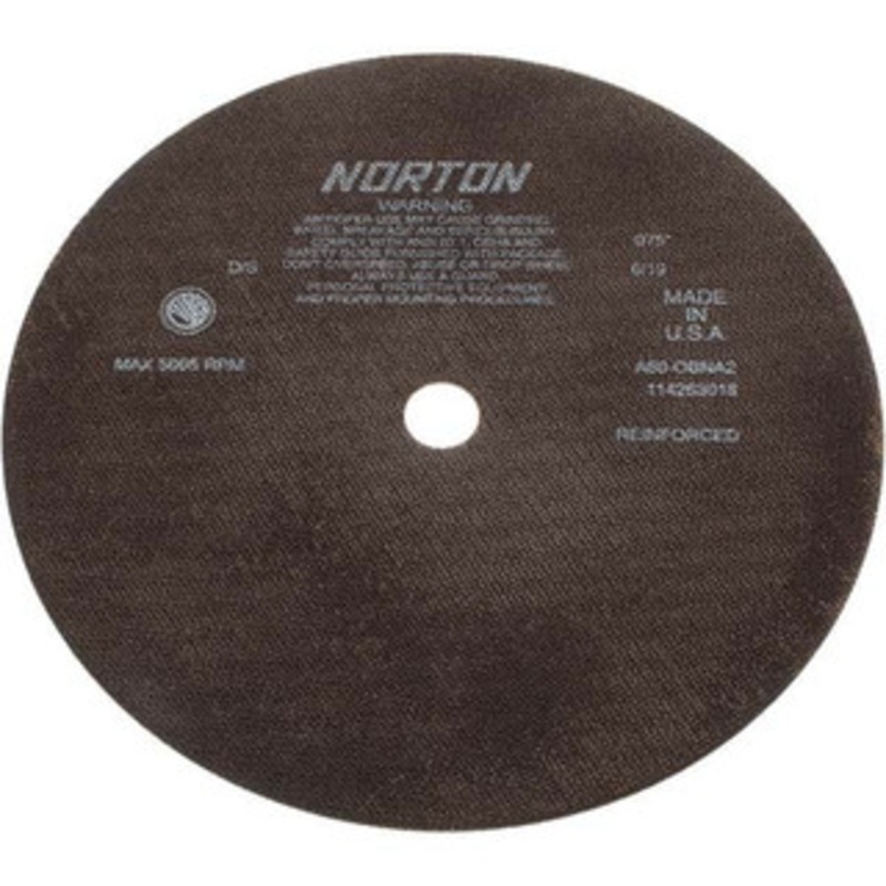 Norton 12 x 0.075, 1" Hole 60 Grit Aluminum Oxide Cutoff Wheel Medium Grade, Reinforced, 5,095 Max RPM, Use with Stationary GrindersManufacturer Part #: 66253261910S/N: 01351022UNSPSC: 23131503UPC: 662532619107(Minimum Order Quantity=1, Package Quantity=1)
