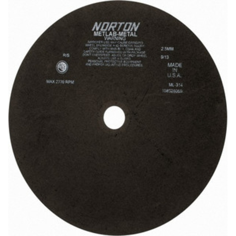 Norton 13-3/4 x 0.098, 1-1/4" Hole Aluminum Oxide Cutoff Wheel 2,770 Max RPM, Use with Stationary ToolsManufacturer Part #: 66253322157S/N: 42064980UNSPSC: 23131503UPC: 662533221576(Minimum Order Quantity=1, Package Quantity=1)Specifications:Wheel Diameter