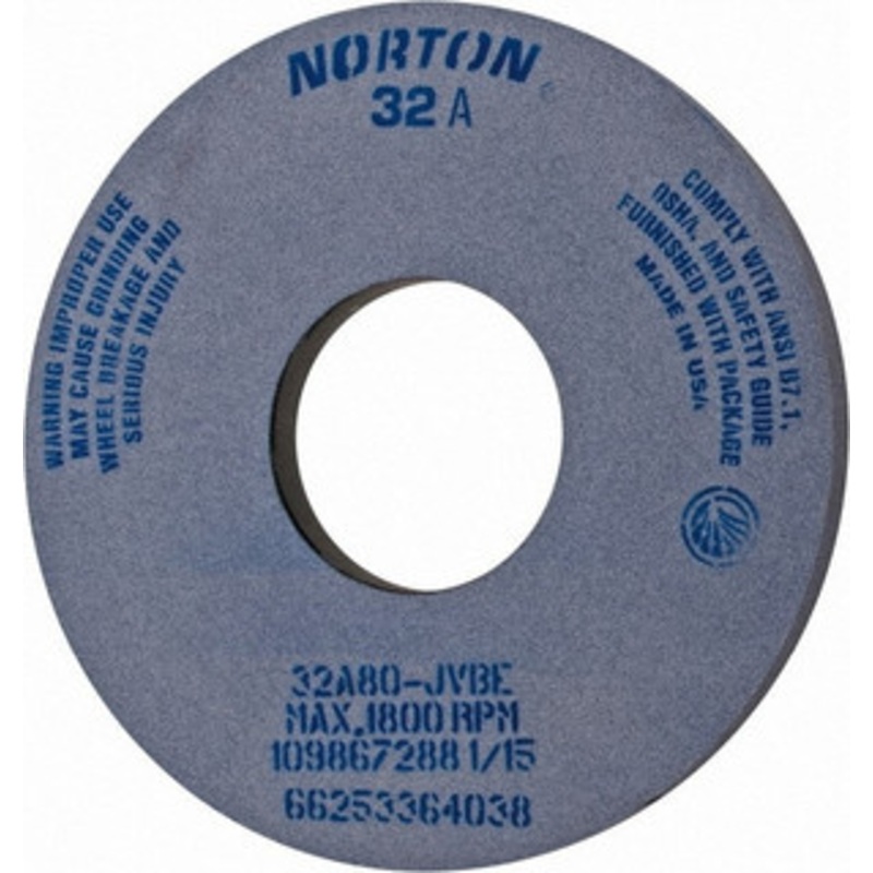 Norton 14" Diam x 5" Hole x 1" Thick, J Hardness, 80 Grit Surface Grinding Wheel Aluminum Oxide, Type 1, Medium Grade, 1,800 Max RPM, Vitrified Bond, No RecessManufacturer Part #: 66253364038S/N: 95279154UNSPSC: 23131503UPC: 662533640384(Minimum Order Quan