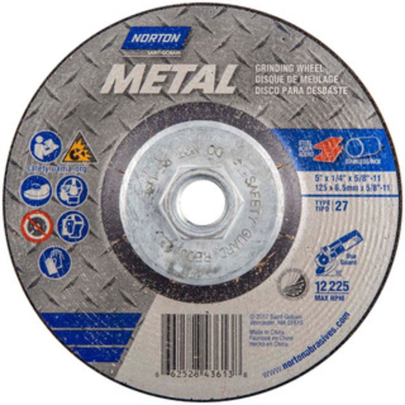 Norton 24 Grit, 5 Wheel Diam, 1/4 Wheel Thickness, Type 27 Depressed Center Wheel Aluminum Oxide 66252843613 – 58391848