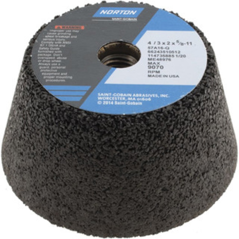 Norton 4" Diam, 2" Overall Thickness, 16 Grit, Type 11 Tool & Cutter Grinding Wheel Very Coarse Grade, Aluminum Oxide, Q Hardness, 9,070 RPMManufacturer Part #: 66243510512S/N: 67432492UNSPSC: 23131503UPC: 662435105127(Minimum Order Quantity=1, Package Qua