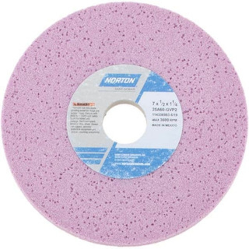 Norton 7" Diam x 1-1/4" Hole x 1/2" Thick, G Hardness, 60 Grit Surface Grinding Wheel Aluminum Oxide, Type 1, Medium Grade, 3,600 Max RPM, Vitrified Bond, No RecessManufacturer Part #: 66252916220S/N: 82028747UNSPSC: 23131503UPC: 662529162203(Minimum Order