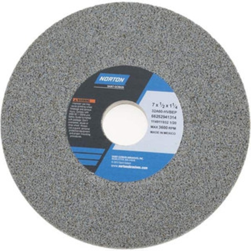 Norton 7" Diam x 1-1/4" Hole x 1/2" Thick, H Hardness, 60 Grit Surface Grinding Wheel Aluminum Oxide, Type 1, Medium Grade, 3,600 Max RPM, Vitrified Bond, No RecessManufacturer Part #: 66252941314S/N: 96410022UNSPSC: 23131503UPC: 662529413145(Minimum Order