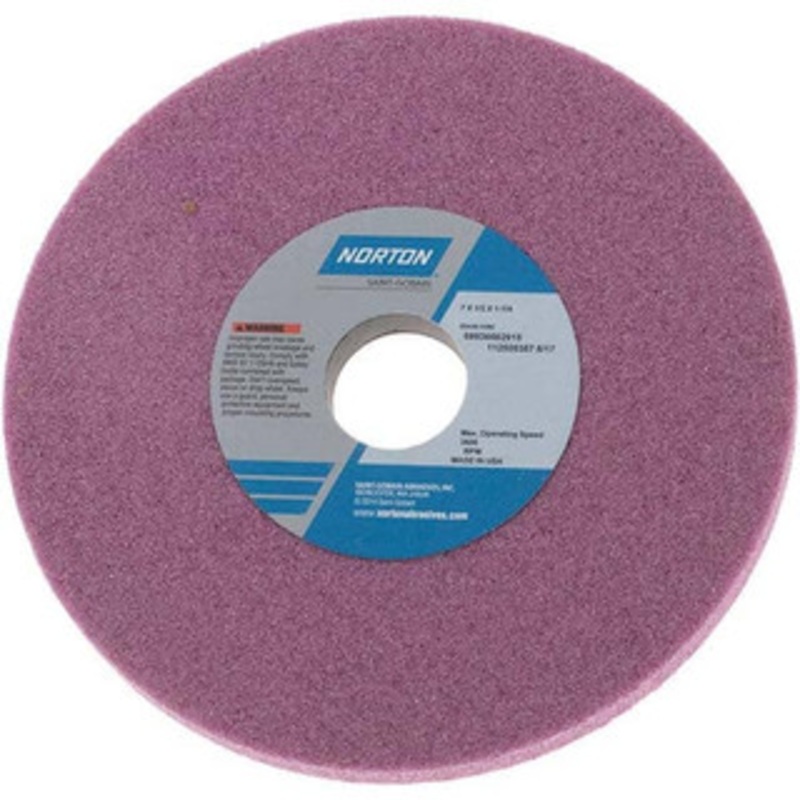 Norton 7" Diam x 1-1/4" Hole x 1/2" Thick, I Hardness, 46 Grit Surface Grinding Wheel Aluminum Oxide, Type 1, Coarse Grade, 3,600 Max RPM, Vitrified Bond, No RecessManufacturer Part #: 69936662915S/N: 01363662UNSPSC: 23131503UPC: 699366629156(Minimum Order