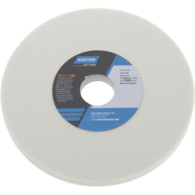 Norton 7 Diam x 1-1/4 Hole x 1/2 Thick, J Hardness, 60 Grit Surface Grinding Wheel Aluminum Oxide, Type 1, Medium Grade, 3,600 Max RPM, Vitrified Bond, No Recess 66252941038 – 05936034
