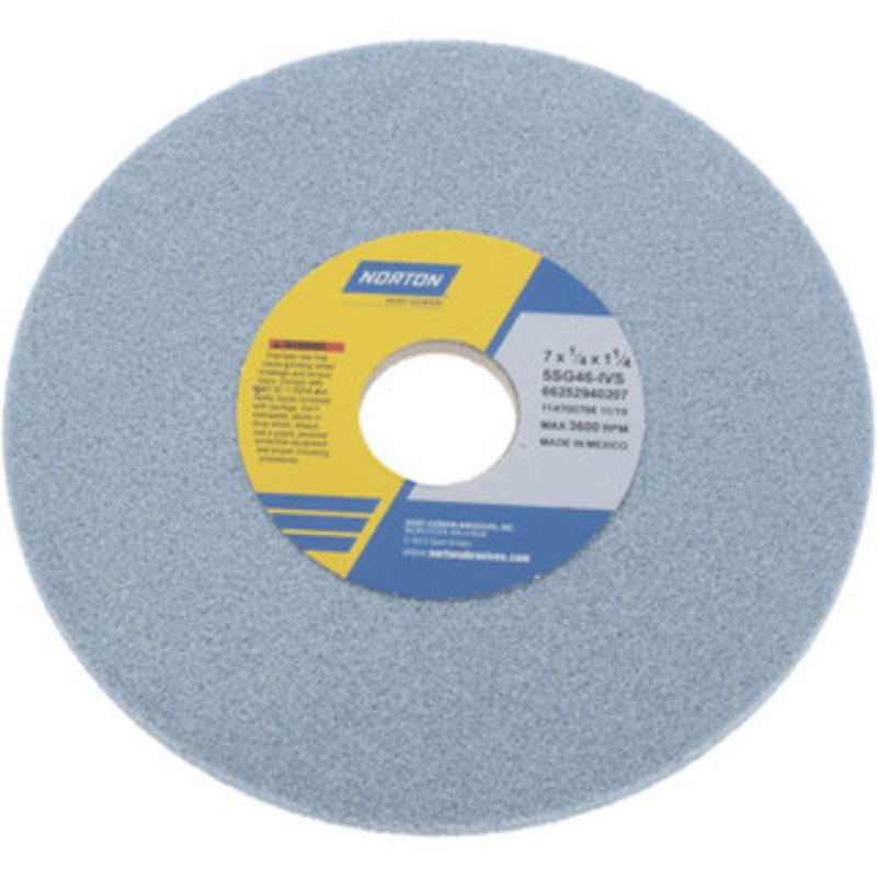 Norton 7 Diam x 1-1/4 Hole x 1/4 Thick, I Hardness, 46 Grit Surface Grinding Wheel Ceramic, Type 1, Coarse Grade, 3,600 Max RPM, Vitrified Bond, No Recess 66252940207 – 05008438