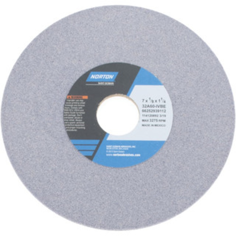 Norton 7" Diam x 1-1/4" Hole x 1/8" Thick, I Hardness, 60 Grit Surface Grinding Wheel Aluminum Oxide, Type 1, Medium Grade, 3,275 Max RPM, Vitrified Bond, No RecessManufacturer Part #: 66252939112S/N: 97289565UNSPSC: 23131503UPC: 662529391122(Minimum Order