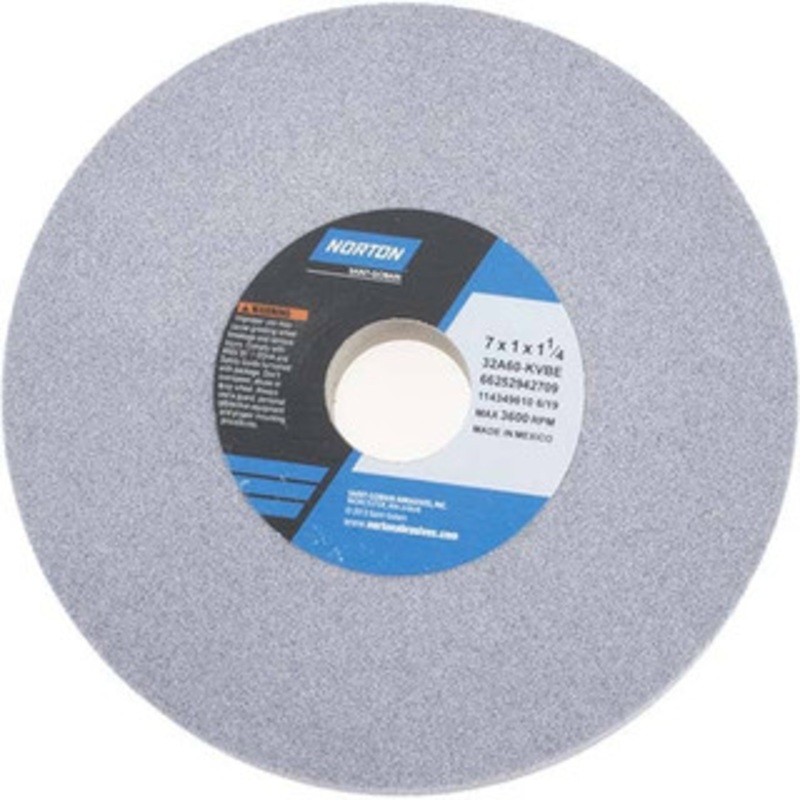 Norton 7 Diam x 1-1/4 Hole x 1 Thick, K Hardness, 60 Grit Surface Grinding Wheel Aluminum Oxide, Type 1, Medium Grade, 3,600 Max RPM, Vitrified Bond, No Recess 66252942709 – 95157889